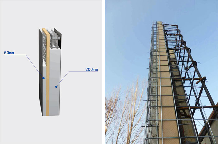 SD钢筋网架保温板外侧双层网片间距35--45MM,施工过程中采用普通混凝土由内向外循环浇筑结构层与保护层,可在施工时按规范要求振捣,固定网片紧靠保温板,保证振捣施工时保温板不会被破坏。符合传统施工工艺施工和工人的施工习惯。