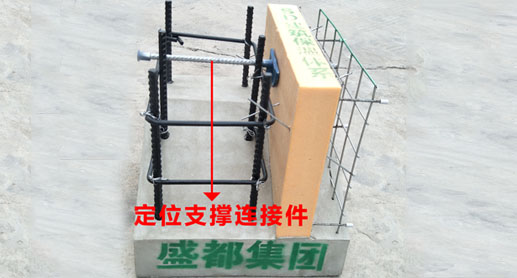 SD建筑保温体系采用专用定位支撑连接件连接结构层、保温层和保护层。专用结构连接件中包含: φ 8连接钢筋,防止保温板里面钢筋锈蚀的防腐套管,防止保温板内移的保温固定片,保证结构钢筋保护层厚度的钢筋固定挡板,以及端头防腐相,集连接、支撑、定位、防腐于-体,施工时,将其搭设在箍筋上,穿透保温板后旋转连拉件,使结构钢筋与连接件相互作用,有效保证模板式设。混凝土请筑过程中,该连接件位置不变形,且无需额外增加结构垫块或构件。使技术上有了质的飞跃。