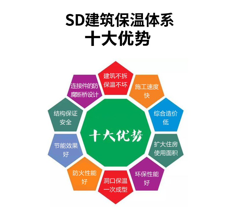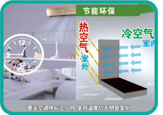 SD建筑保温体系由于其结构优势,所以具有良好的保温隔热性能,实验证明,采用建筑保温体系的房屋,夏天空调停后三小时,室内温度仍无明显变化,满足严寒和寒冷地区居住建筑节能百分之75的发展要求。