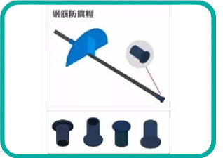 无论是模板顶丝或结构连接件,在与模板接触部位,设有防腐帽,具有保护模板,防止生锈,隔断热桥的作用。
